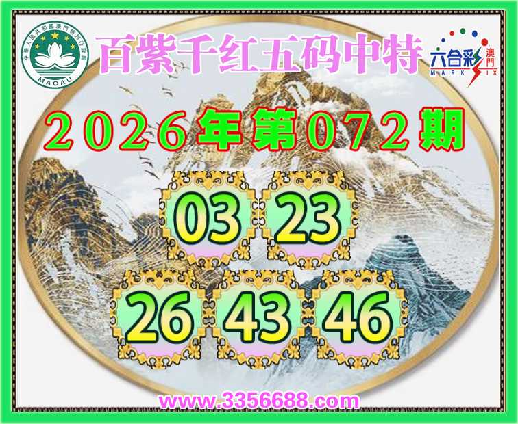 072期:【百紫千红】 🀄五码中特🀄【03.23.26.43.46】开:46准上榜高手